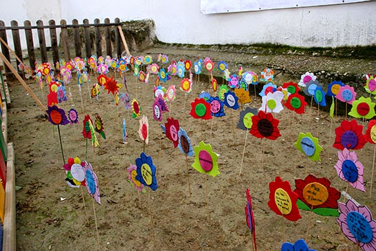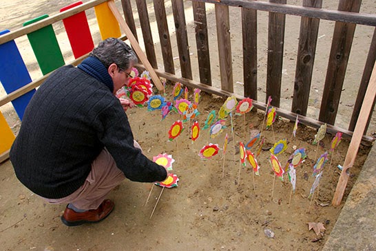 Por ello, en el día de hoy se ha llevado a cabo la actividad “El Jardín de la Paz”, consistente en plantar en el recinto preparado al efecto, flores realizadas por los niños y niñas con papel y goma Eva en las que además se han incluido mensajes de paz.