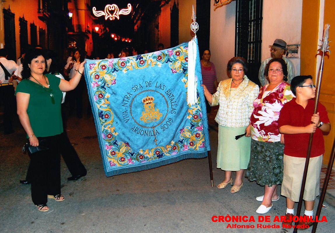 La bandera que actualmente se utiliza para simbolizar este cargo corresponde al año 2009 en el que fue donada por Paquita Álvarez Carmona que le hizo el encargo para su confección a la bordadora Vicenta Vela. Esta bandera sustituyó a la anterior que correspondía al año 1969 y que había donado Reyes García Ruiz.