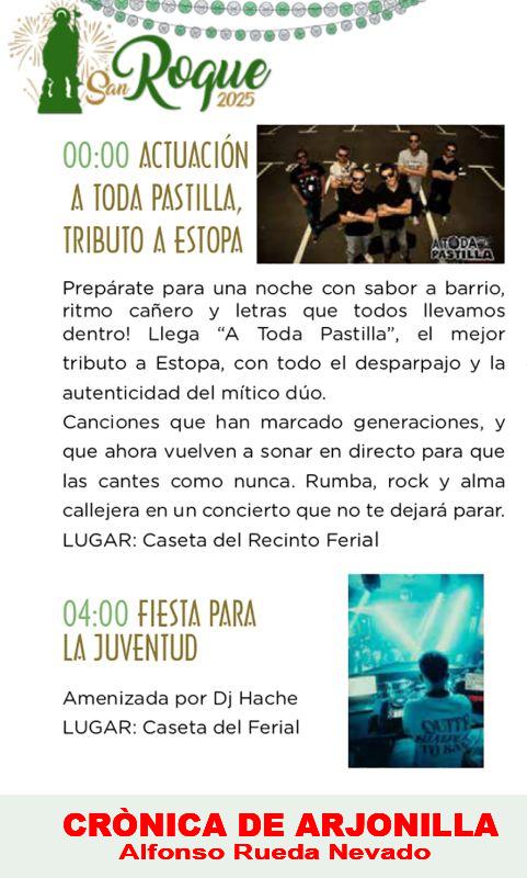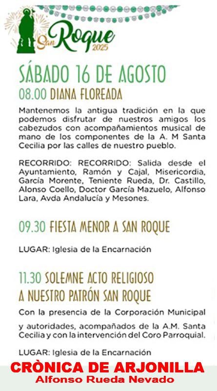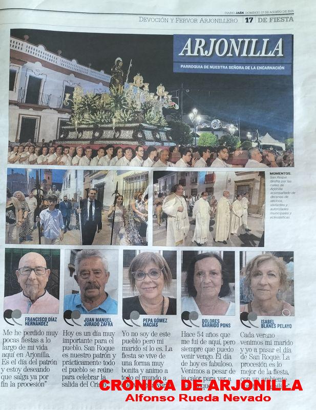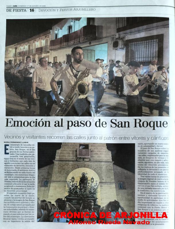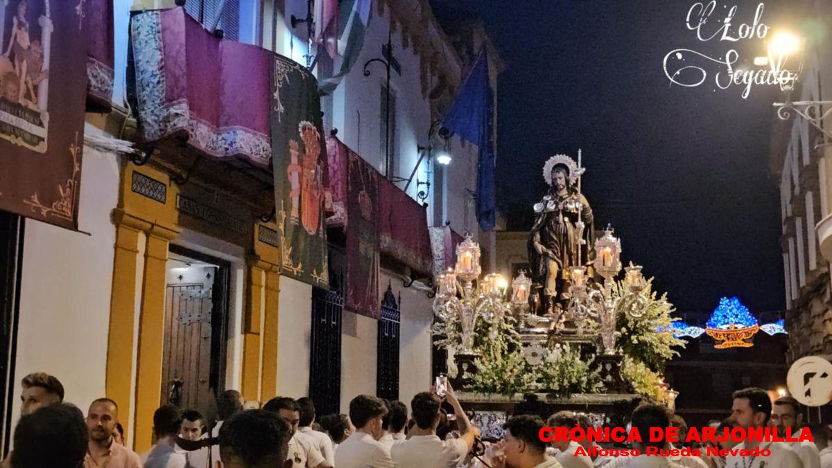 La imagen de nuestro patrón San Roque ha sido procesionada con gran fervor y devoción por las calles arjonilleras y como manda la tradición, teniendo como final el regreso a su ermita donde será objeto de devoción hasta el 5 de agosto de 2026. Final una vez más con un excelente piromusical en honor de nuestro patrón.