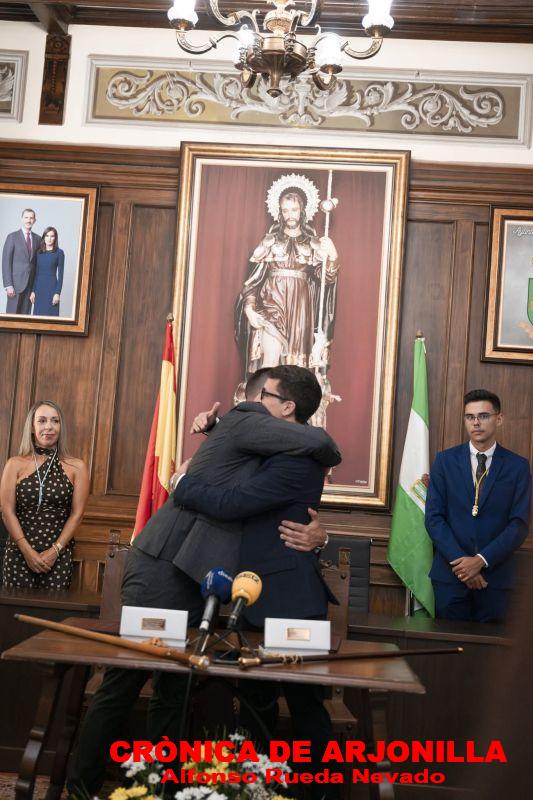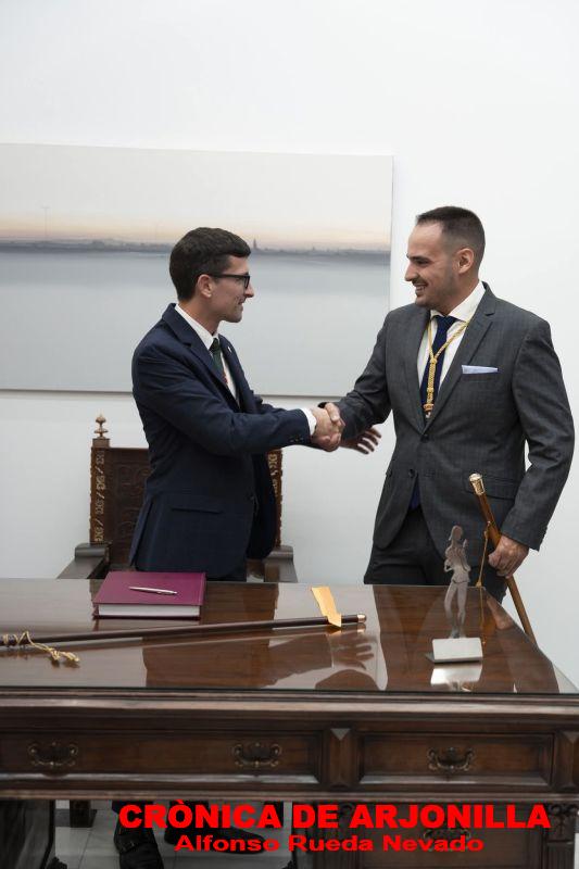 Anxo Rei Arca Y Luis Miguel Carmona Maroto firmaron el documento que sella este hermanamiento entre Arjonilla y Padrón del que se espera sea positivo para el intercambio de experiencias entre ambos municipios.