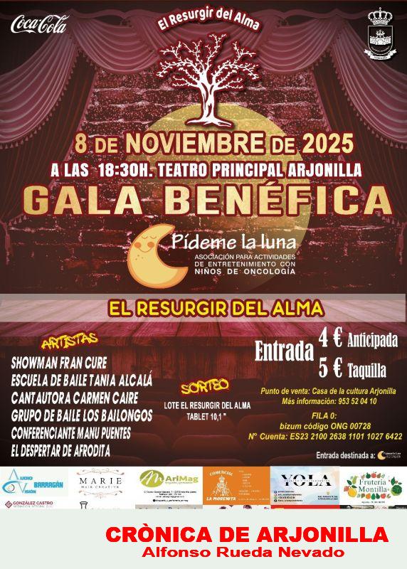 El próximo sábado 8 de noviembre a las 18:30 horas en el Teatro Municipal El Trovador, Gala Benéfica de la Asociación Pídeme la Luna, “EL RESURGIR DEL ALMA” en la que participarán un levado número de artistas que tratarán de divertir al público asistente a la misma.