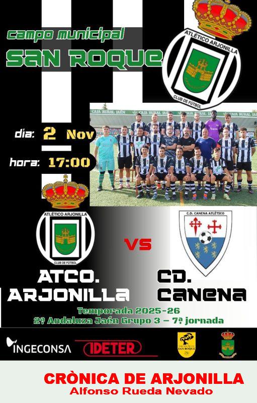 Este próximo domingo a las 17 horas en el Municipal San Roque, enfrentamiento entre el Ato. Arjonilla CF y el CD Canena en partido correspondiente a la 7ª jornada de la 2ª Andaluza Jaén Grupo 3.