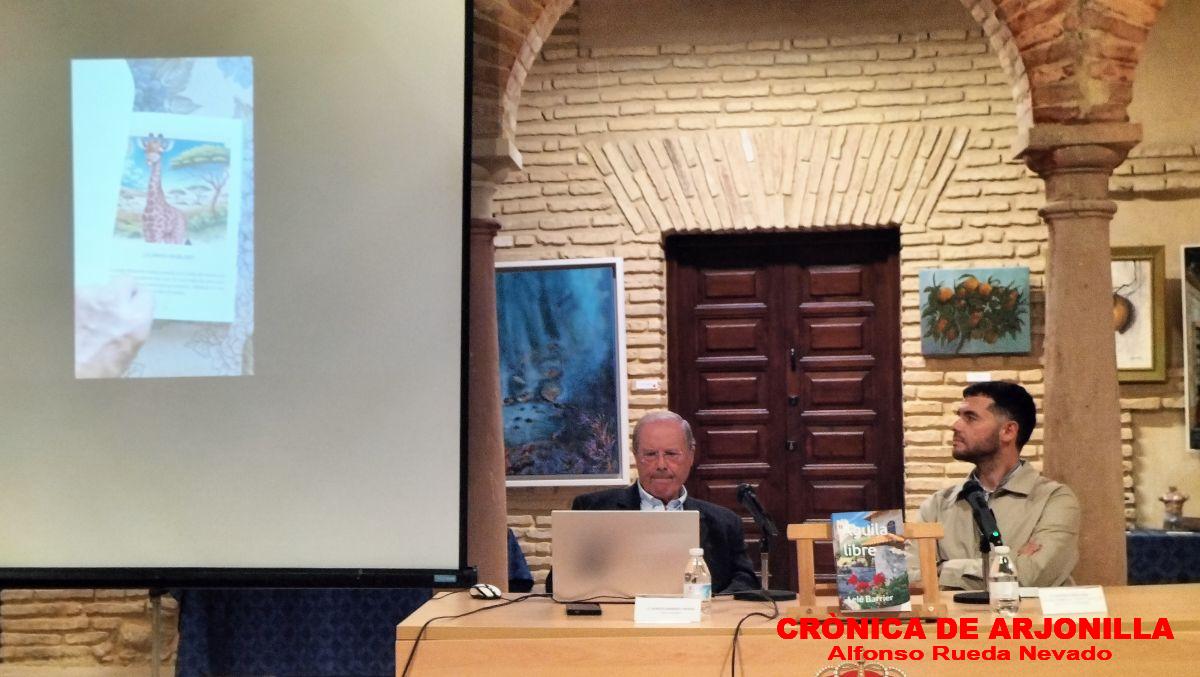Esta tarde, la casa-palacio del Marqués de la Merced ha acogido la presentación por parte de Aurelio Ortega Barrera de dos nuevas obras suyas: “Águila Libre” y el cuento “La Jirafa Mubundi y Los Martinicos”.