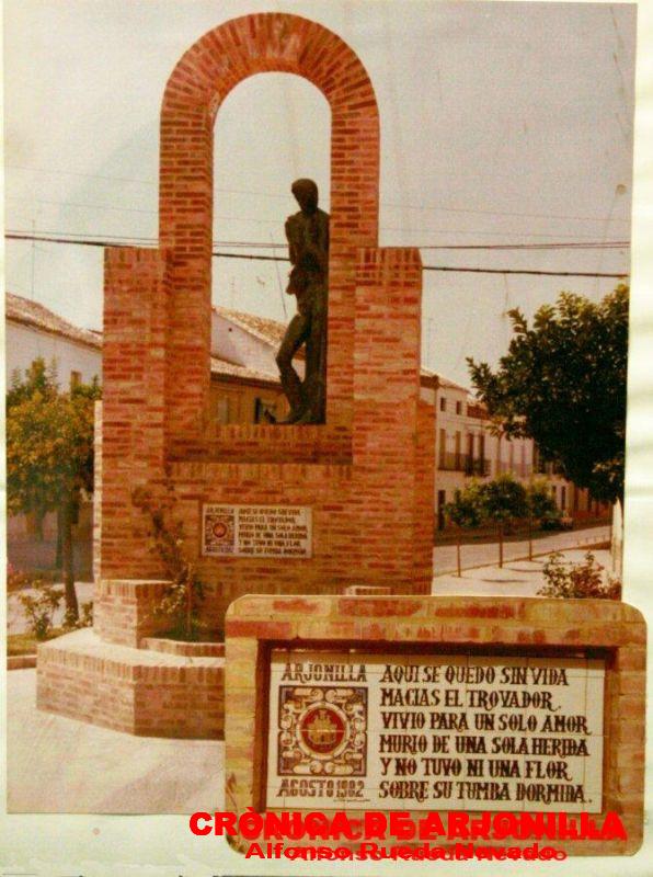 Esto me ha traído al recuerdo una transformación anterior que se remonta unas décadas más atrás. En esta misma zona, en 1982 fue ubicada la figura de nuestro Trovador Macías que fue quitada de este lugar y después de varios años de descanso en un almacén municipal, fue instalada en su actual ubicación en el castillo.