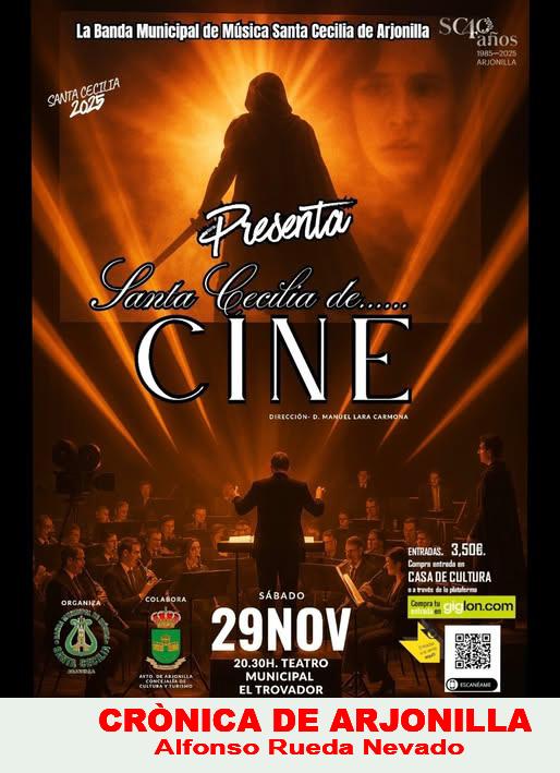 La Banda de Música “Santa Cecilia” de Arjonilla ha dado a conocer que enmarcado en la festividad de la patrona de la música, Santa Cecilia, va a realizar un concierto con el título “SANTA CECILIA DE… CINE”.